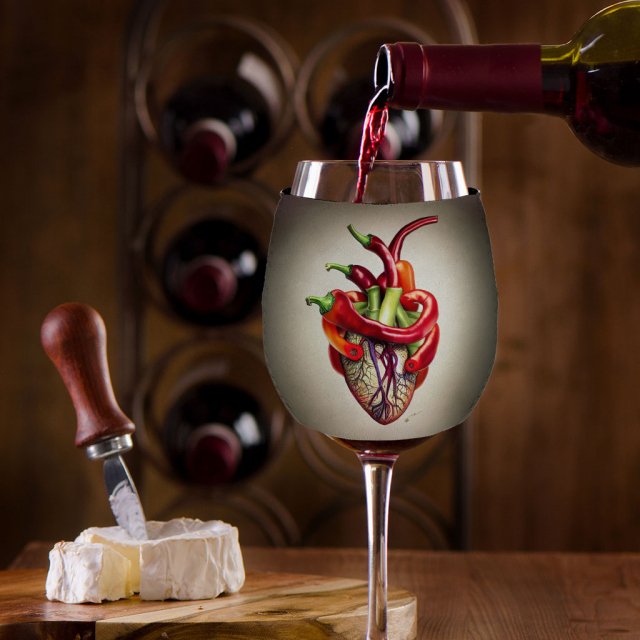 Chili Pepper Wine Glass Sleeve – Heart Sleeves for Wine Glass – Art Wine Glass Sleeve