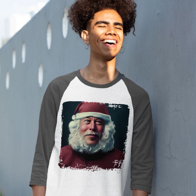 Christmas Art Baseball T-Shirt – Funny Elon Musk T-Shirt – Santa Claus Tee Shirt