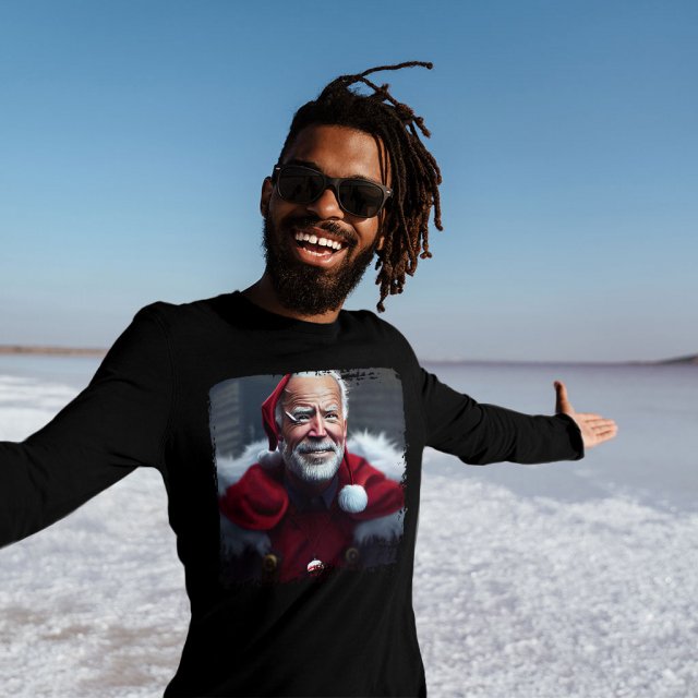 Christmas Art Long Sleeve T-Shirt – Biden Santa T-Shirt – Portrait Long Sleeve Tee Shirt