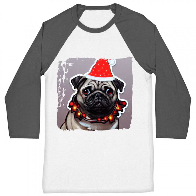 Christmas Print Baseball T-Shirt – Graphic T-Shirt – Dog Art Baseball Tee