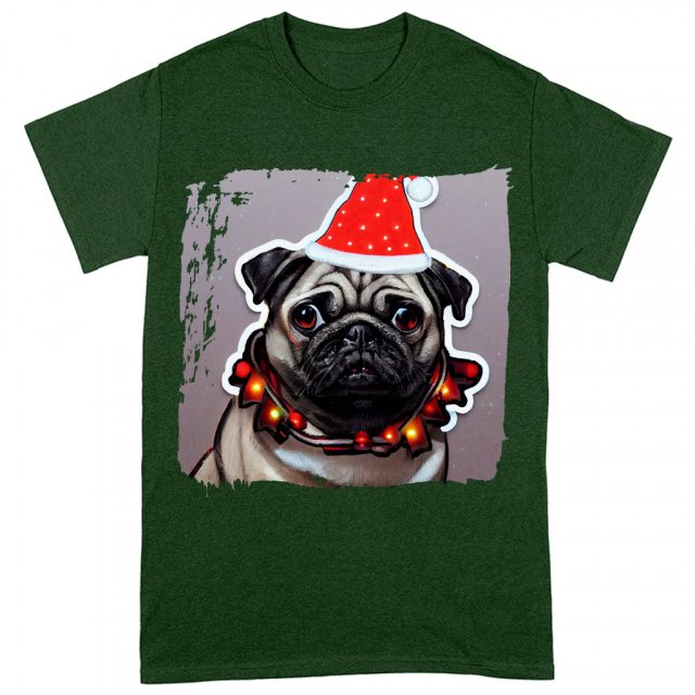 Christmas Print Heavy Cotton T-Shirt – Graphic Tee Shirt – Dog Art T-Shirt