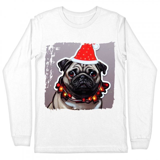 Christmas Print Long Sleeve T-Shirt – Graphic T-Shirt – Dog Art Long Sleeve Tee