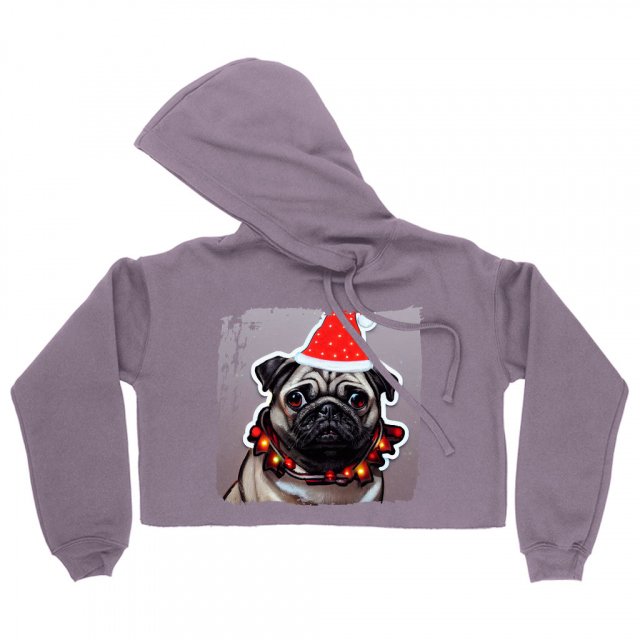Christmas Print Women’s Cropped Hoodie – Graphic Cropped Hoodie – Dog Art Hooded Sweatshirt