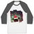 features raglan 3/4 sleeves and a modern fit that is perfect for a day