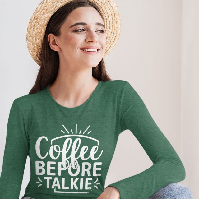 Coffee Before Talkie Long Sleeve T-Shirt – Coffee Sayings T-Shirt – Themed Long Sleeve Tee Shirt