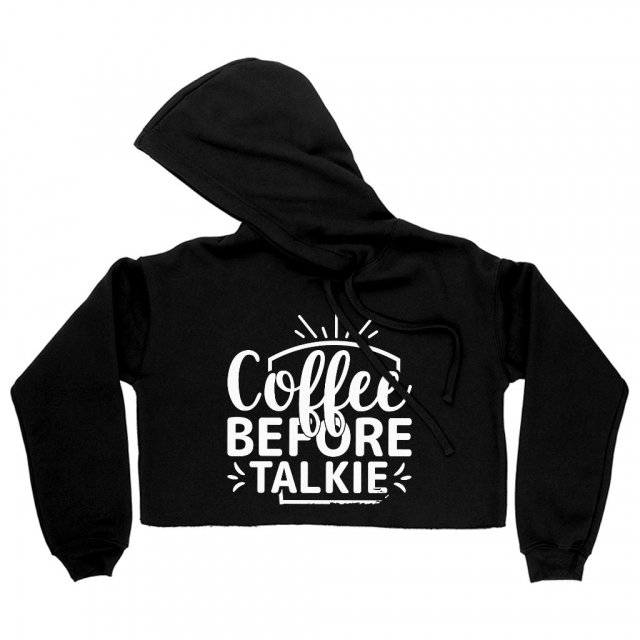 Coffee Before Talkie Women’s Cropped Fleece Hoodie – Coffee Sayings Cropped Hoodie for Women – Themed Hooded Sweatshirt