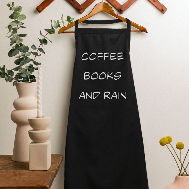Coffee Books And Rain Apron – Quotes Cooking Apron – Printed Apron for Men for Women