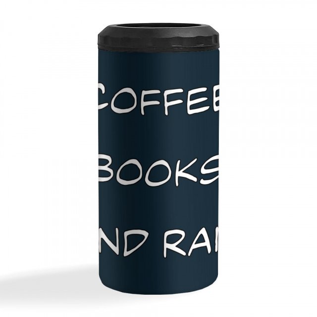 Coffee Books And Rain Insulated Slim Can Cooler – Quotes Can Cooler – Printed Insulated Slim Can Cooler