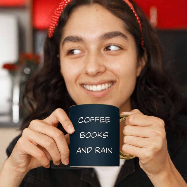 Coffee Books And Rain Mug – Quotes Gold Rim and Handle Mug – Printed Mug