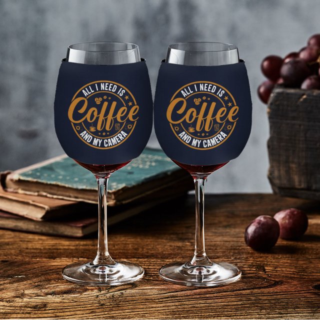Coffee Themed Wine Glass Sleeve – Camera Sleeves for Wine Glass – Cool Design Wine Glass Sleeve