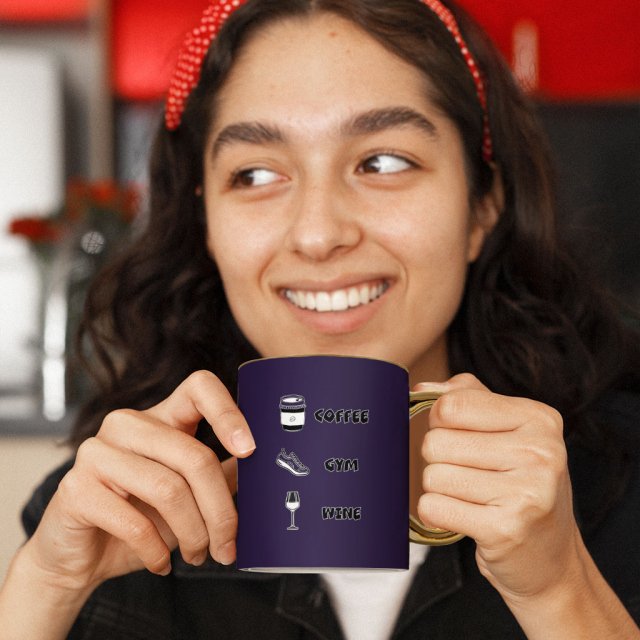 Cool Coffee Mug – Gym Gold Rim and Handle Mug – Wine Mug
