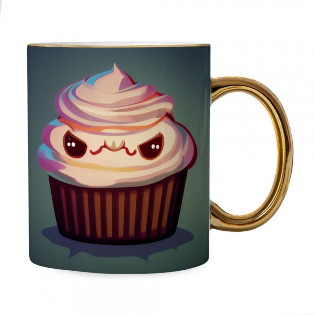 Cool Design Mug – Cupcake Print Gold Rim and Handle Mug – Cool Graphic Mug