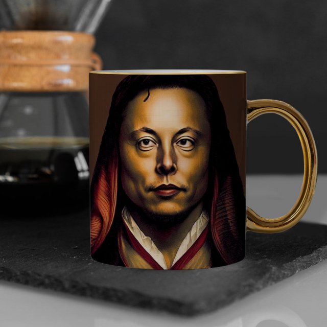 Cool Face Mug – Creative Art Gold Rim and Handle Mug – Themed Mug