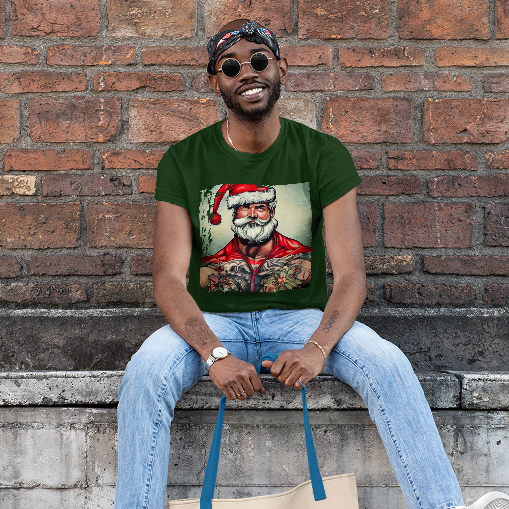 day? Look no further than Tattoo Santa! It features double-needle sleeve
