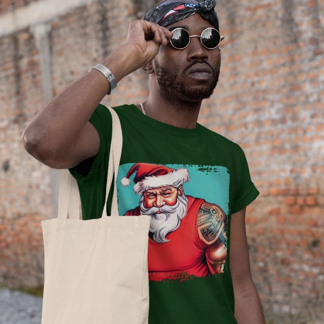 Cool Santa Claus Heavy Cotton T-Shirt – X-Mas Tee Shirt – Art Print T-Shirt (Copy)