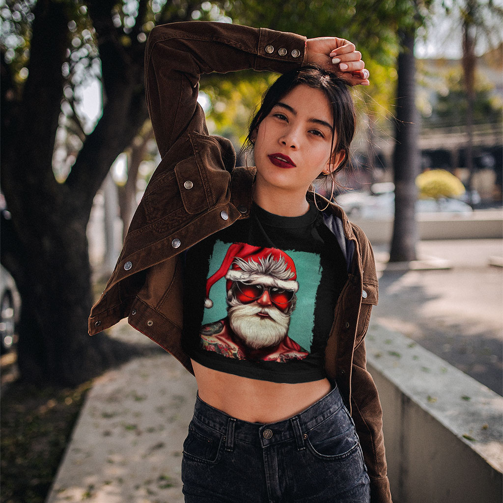 Cool Santa Women’s Cropped T-Shirt – Santa Claus Crop Top – Printed Crop Tee Shirt