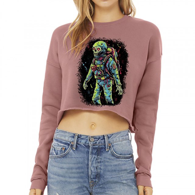 Cool Zombie Cropped Sweatshirt – Cool Art Women’s Sweatshirt – Graphic Crop Crew Sweatshirt