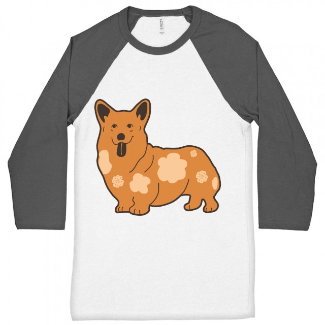 Corgi Silhouette Baseball T-Shirt – Flower Print T-Shirt – Graphic Tee Shirt