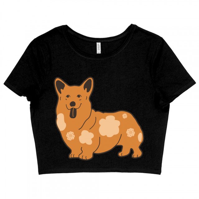 Corgi Silhouette Women’s Cropped T-Shirt – Flower Print Crop Top – Graphic Crop Tee Shirt
