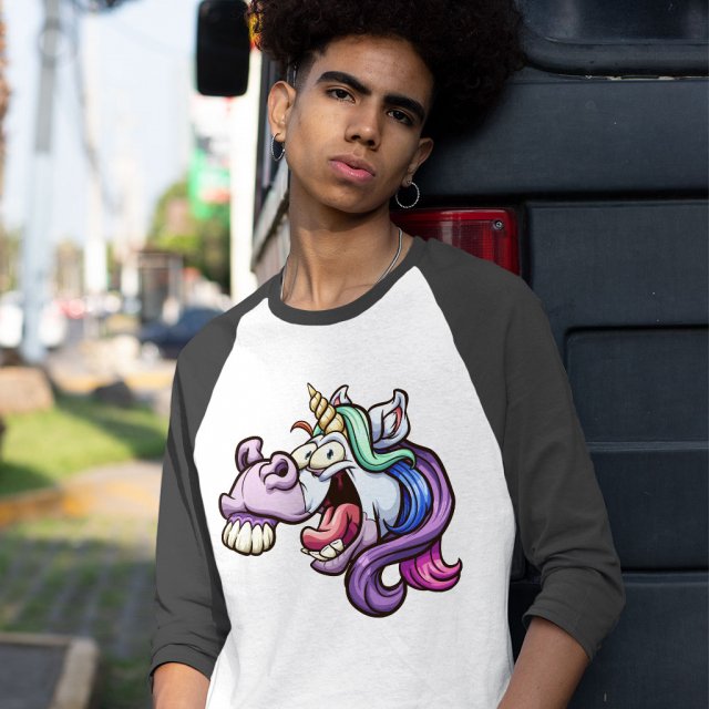 Crazy Unicorn Baseball T-Shirt – Creepy T-Shirt – Illustration Tee Shirt