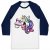features raglan 3/4 sleeves and a modern fit that is perfect for a day