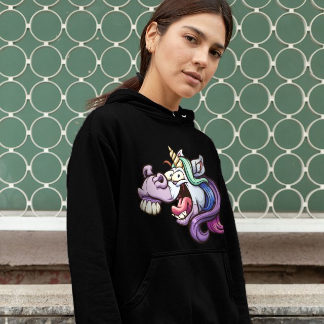 Crazy Unicorn Hooded Sweatshirt – Creepy Hoodie – Illustration Hoodie