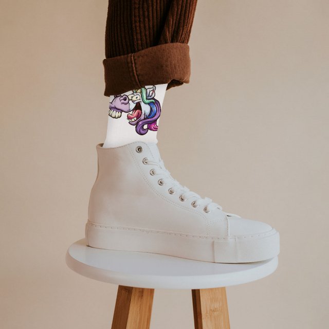 Cushioned foot bottom makes Crazy Unicorn Socks a sure bet for everyday wear, from work, play, gym, sports, and beyond. These socks are designed to be all-season. This product is made breathable for when it’s warm but thick enough for when it’s cold during the winter.