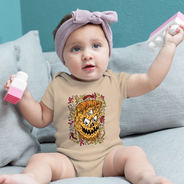 Creepy Baby Jersey Onesie – Pizza Monster Baby Onesie – Cool Design Baby One-Piece