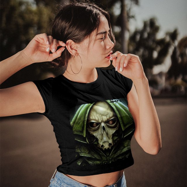 Creepy Face Women’s Cropped T-Shirt – Cool Skull Crop Top – Monster Crop Tee Shirt