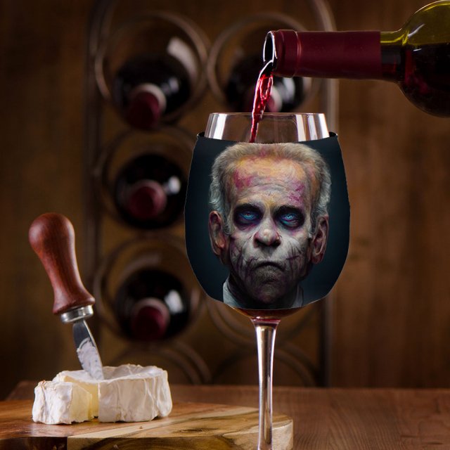 Creepy Halloween Wine Glass Sleeve – Zombie Head Sleeves for Wine Glass – Artwork Wine Glass Sleeve
