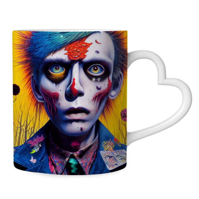 Creepy Head Mug with Heart Handle – Cool Mug – Themed Ceramic Mug