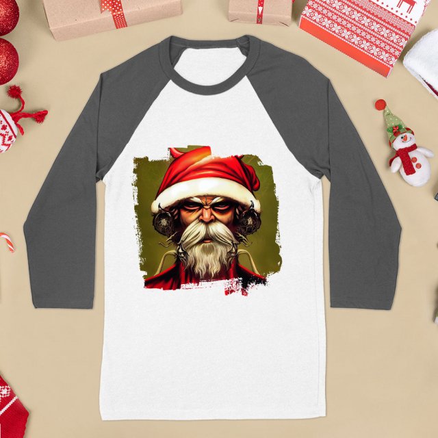 Creepy Santa Baseball T-Shirt – Santa Claus Print Clothing – Great Present Ideas