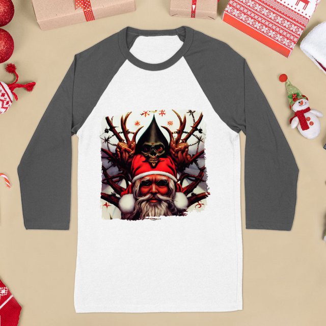 Creepy Santa Claus Baseball T-Shirt – Santa Claus Print Clothing – Cool Presents