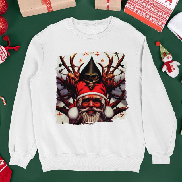 Creepy Santa Claus Crewneck Sweatshirt – Santa Claus Print Clothing – Cool Presents