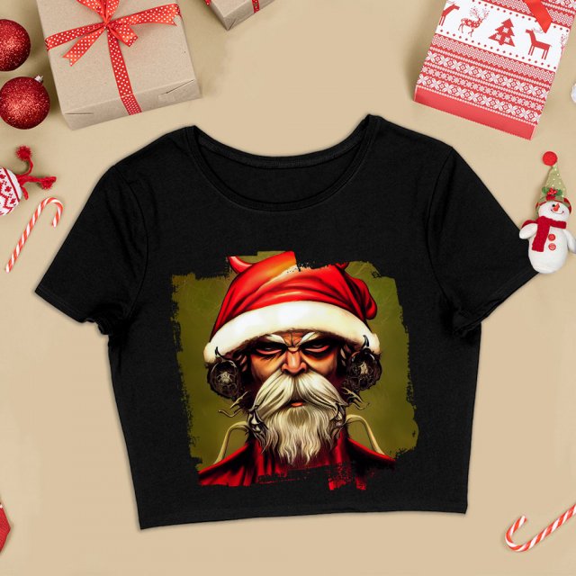 Creepy Santa Cropped T-Shirt – Santa Claus Print Clothing – Great Present Ideas