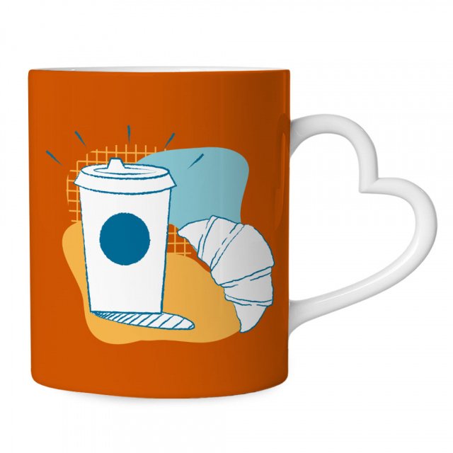 Croissant Mug with Heart Handle – Coffee Themed Mug – Artwork Ceramic Mug