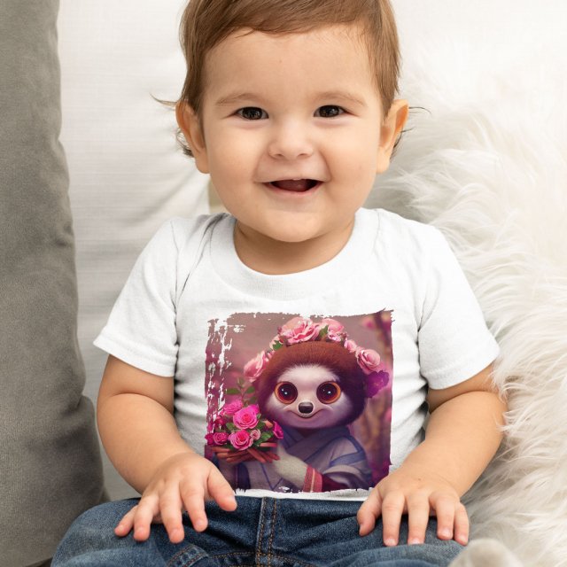 Cute Animal Baby Jersey T-Shirt – Flower Baby T-Shirt – Cute Print T-Shirt for Babies