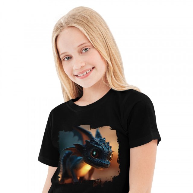 Cute Black Dragon Kids’ T-Shirt – Cartoon T-Shirt – Kawaii Tee Shirt for Kids