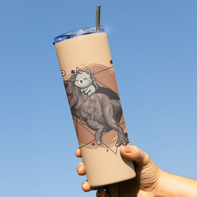 Cute Dinosaur 20oz Skinny Tumbler – Cat Travel Mug – Printed 20oz Skinny Tumbler
