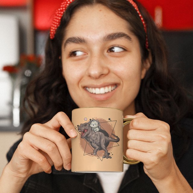 Cute Dinosaur Mug – Cat Gold Rim and Handle Mug – Printed Mug