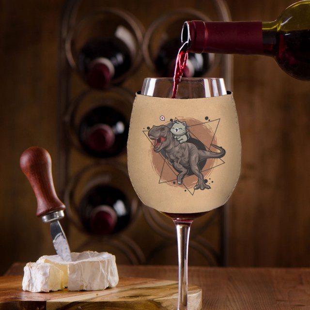 Cute Dinosaur Wine Glass Sleeve – Cat Sleeves for Wine Glass – Printed Wine Glass Sleeve
