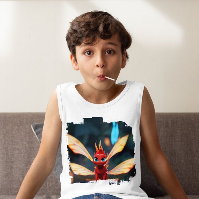Cute Dragon Kids’ Jersey Tank – Fire Dragon Sleeveless T-Shirt – Printed Kids’ Tank Top
