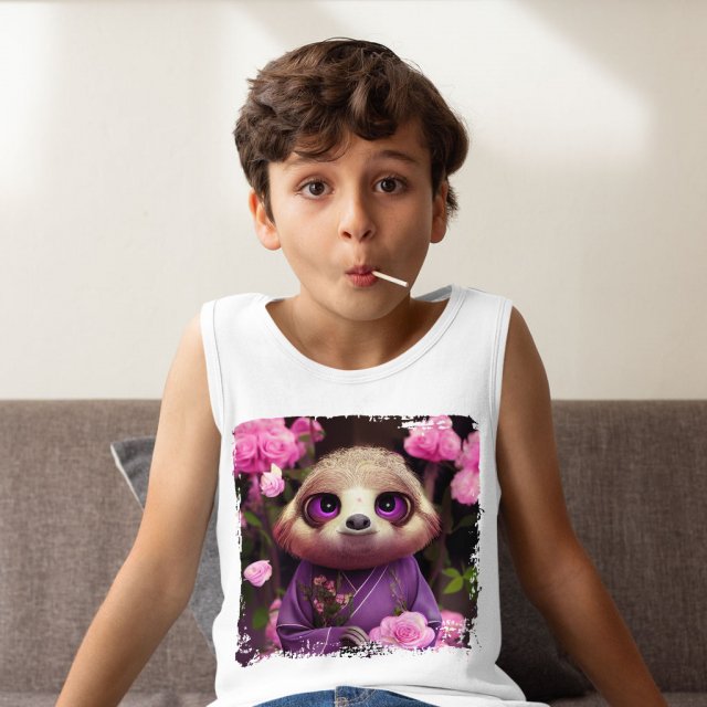Cute Flower Kids’ Jersey Tank – Cute Sloth Sleeveless T-Shirt – Lovely Kids’ Tank Top