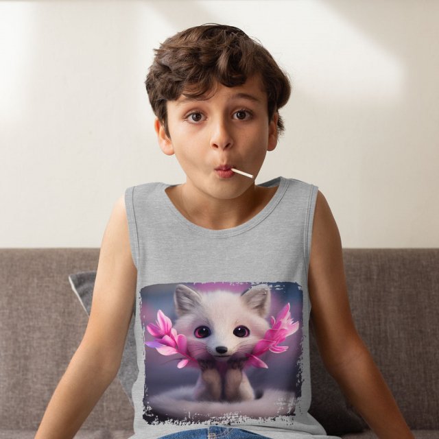 Cute Fox Kids’ Jersey Tank – Blossom Sleeveless T-Shirt – Kawaii Design Kids’ Tank Top