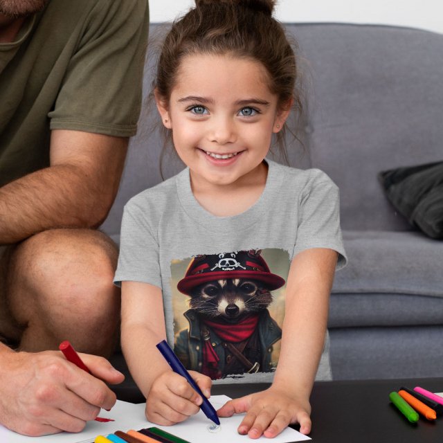 Cute Pirate Toddler T-Shirt – Raccoon Face Kids’ T-Shirt – Futuristic Tee Shirt for Toddler
