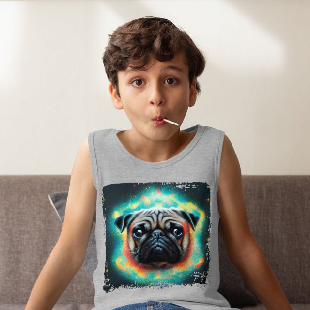 Cute Pug Art Kids’ Jersey Tank – Space Sleeveless T-Shirt – Dog Kids’ Tank Top
