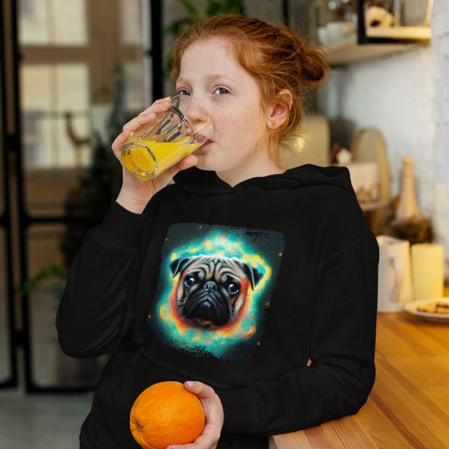Cute Pug Art Kids’ Sponge Fleece Hoodie – Space Kids’ Hoodie – Dog Hoodie for Kids