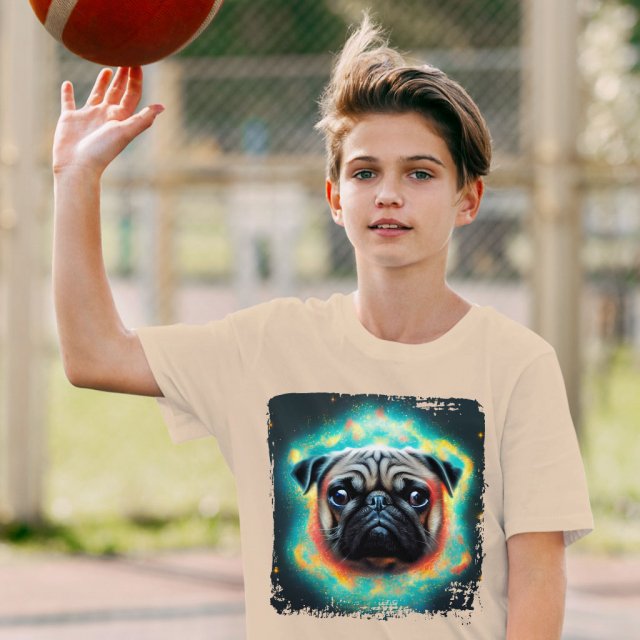 Cute Pug Art Kids’ T-Shirt – Space T-Shirt – Dog Tee Shirt for Kids