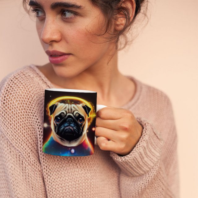 Cute Pug Mug with Heart Handle – Animal Mug – Galaxy Ceramic Mug