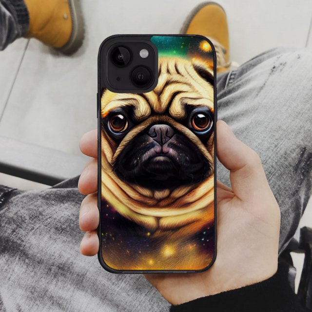 Looking for a case that will protect your iPhone 14 Plus? Look no further than this high quality soft TPU material Galaxy Pug! This case is made to fit your iPhone 14 Plus perfectly and provides great protection against bumps and scratches. The sleek design of the case also makes it easy to grip and hold onto your phone. So why wait? Get yourself an awesome Dog today!